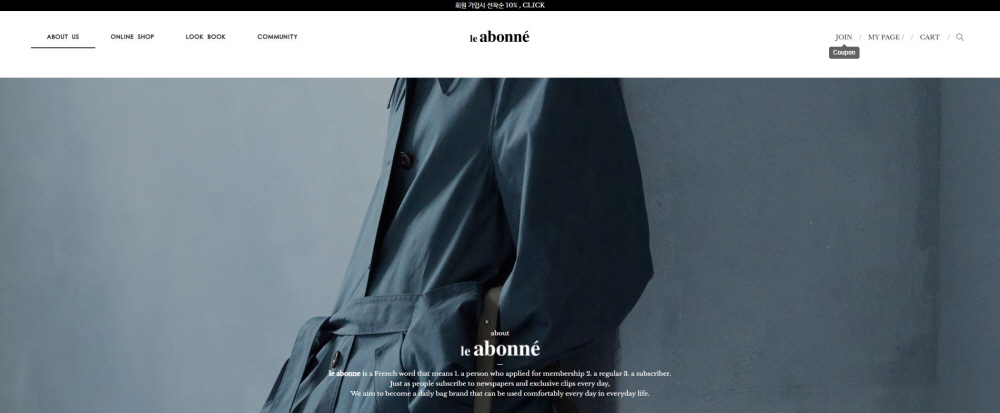 아보네는 자사몰 오픈을 기념해 역대급 할인 이벤트도 진행한다. 회원가입을 한 모든 고객에게 론칭 이후 최대 할인율을 적용, 전 품목을 최대 60% 할인가로 만나볼 수 있는 것. 또한 신규회원으로 가입한 선착순 200명에게 중복 이용 가능한 10% 할인쿠폰도 추가 증정한다.