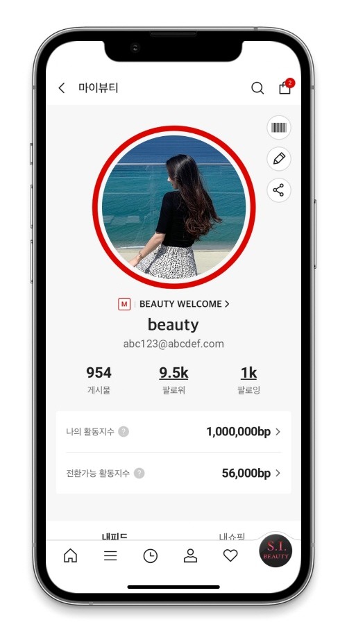 에스아이뷰티는 크게 피드와 샵 두 가지 기능으로 나뉜다. 피드는 회원들의 활동과 리뷰, 브랜드 소식 등의 콘텐츠를 둘러볼 수 있는 공간으로 개인별 맞춤화했다.