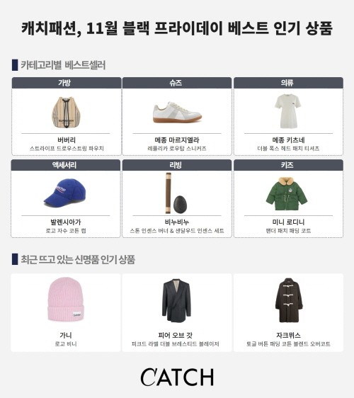 캐치패션(대표 이우창)이 지난 11월 1일부터 30일까지 블랙 프라이데이 시즌 동안 판매된 베스트셀러를 분석한 결과 전통적인 명품 브랜드와 컨템포러리 브랜드가 조화를 이룬 가운데 새롭게 뜨고 있는 신 명품 브랜드의 약진이 두드러졌다.