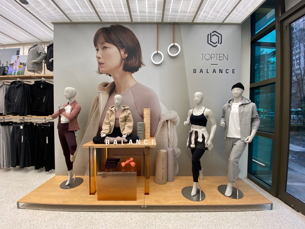 특히 ‘탑텐’의 에슬레져 웨어 밸런스 조닝은 약 15평대 규모의 단독 구성과 기존 매장과 차별화된 인테리어를 통해 다양한 라인업을 선보이는데 일상과 여가를 비롯해 고강도 운동에 필요한 기능성 소재의 프리미엄 라인까지 점진적으로 확장할 계획이다.