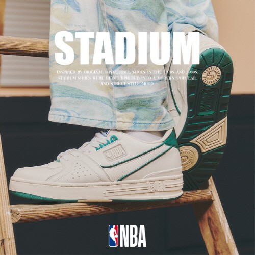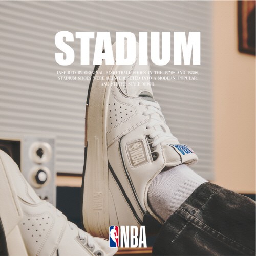 NBA스타디움은 플레이어들의 추억과 열정이 담긴 오리지널 농구화가 ‘NBA’만의 감성으로 재탄생한 제품이다. 클래식함과 모던한 매력이 공존하는 것이 특징으로 레트로 감성의 컬러 포인트, 뛰어난 착화감, 자연스러운 키 높이 효과 등으로 뜨거운 호응을 얻었다. 높이에 따라 심플한 실루엣의 로우와 발목까지 올라오는 미드 2가지 타입으로 구성해 취향에 맞게 고를 수 있는 것이 특징이다.
