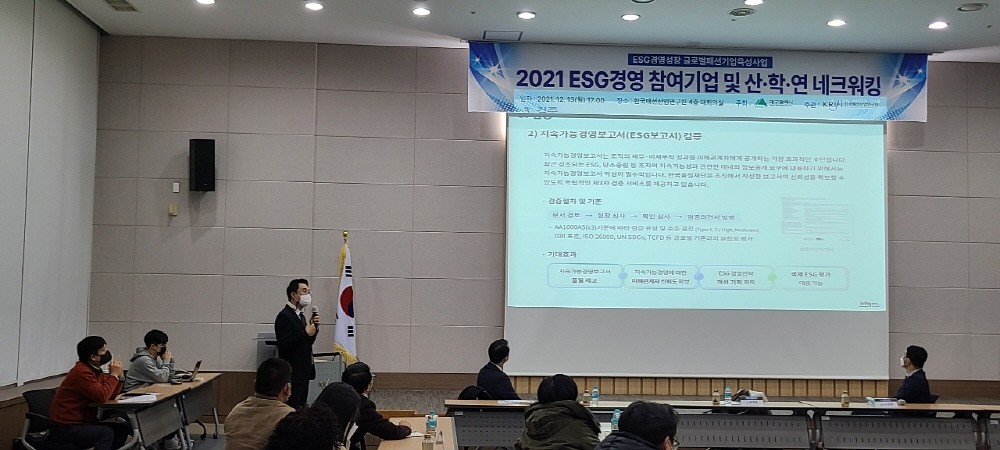 경북대학교 김성환 교수님과 한국품질재단 허경욱 원장은 기업이 장기적인 생존을 위해서는 CSR에서 ESG로 경영패러다임 전환과 관련 인증을 받는 것을 이야기했고 한국생산성본부 오범택 센터장은 ESG는 산업별 특성에 따라 이슈의 중요도 및 성격의 차이가 존재한지만 거래 관계/기업 경영에 필수적 요건으로 등장하고 있다고 말했다.