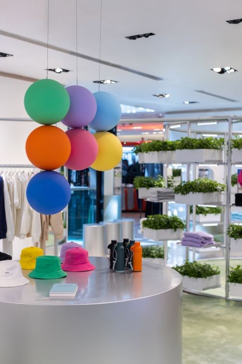 매장 정면에서 보이는 원형의 생 페퍼민트 정원은 코팅 보존 기술인 브랜드의 대표 기술 페퍼민트를 실제화한 설치물이며 주기율표 모양의 무탄소 존은 소비자들이 환경 과학에 더욱 쉽고 재미있게 접근할 수 있도록 디자인되었다.