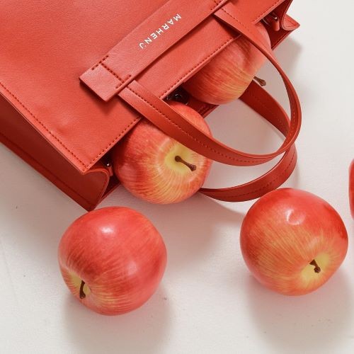 ‘마르헨제이’는 이탈리아 원단 공장에서 생산되는 이 가죽을 국내 독점 계약하여 사과 가죽을 활용한 다양한 비건백을 출시하고 있다.