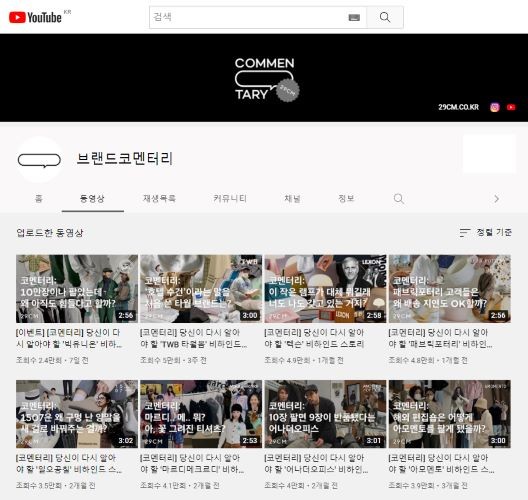 온라인 셀렉트샵 29CM가 자체 유튜브 채널 ‘브랜드코멘터리’를 통해 소개한 입점 브랜드 매출이 평균 3배 이상 증가했다.