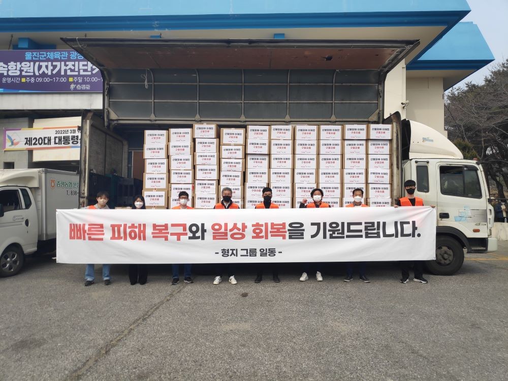 패션그룹형지(대표 최병오)가 동해안 산불 피해지역 주민을 위해 구호 의류를 지원했다.