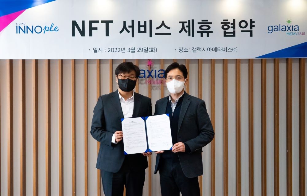 이랜드이노플(대표 김지원)과 갤럭시아메타버스(대표 고광림)가 NFT 사업 협업 파트너십을 골자로 하는 업무협약을 체결했다.