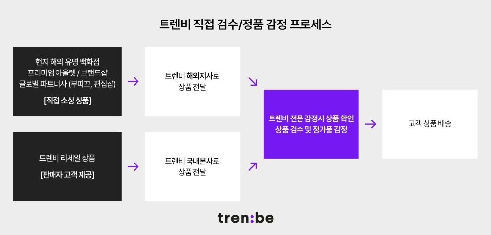 트렌비는 현재 명품 감정팀을 자체 운영중인데 국내외 40여명 규모로 트렌비에서 직접 소싱하는 브랜드 상품을 포함해 트렌비 리세일을 통한 중고명품까지 전수 검수/감정을 진행하고 있다.
