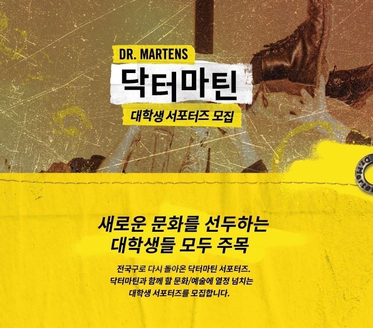 ‘닥터마틴’이 오는 4월 24일까지 공식 온라인 스토어를 통해 전국 대학생 서포터즈를 모집한다.