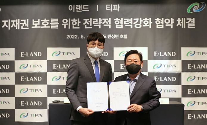 이날 업무 협약식에서 양사는 지식재산권 보호를 위한 기술 개발과 상용화를 위해 적극 협력하기로 합의했다. 이를 통해 TIPA는 개발을 완료하고 테스트 중인 디지털 검사 증명서와 신규 개발 중인 실물인증 시스템을 이랜드리테일에 우선적으로 공급한다.