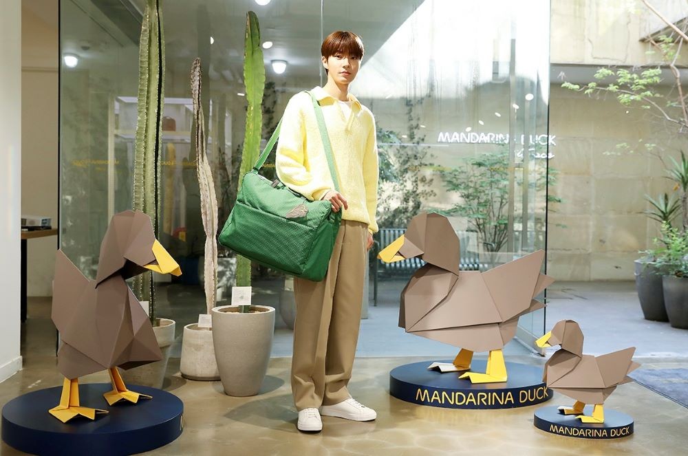 황인엽은 매장 곳곳에서 다양한 만다리나덕가방을 착용, 포토 행사를 가지며 자리를 빛냈다. 황인엽이 착용한 가방은 토트백, 백팩, 보스턴 백 등 아이템으로 특히 보스턴 백과 함께 브랜드의 시그니처 오리 오브제 속에서 포토 타임을 가지며 우월한 피지컬을 뽐냈다.
