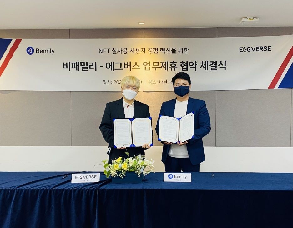양사는 이번 MOU 체결의 일환으로 비패밀리의 이모티콘을 에그버스의 NFT 거래소 플랫폼인 에그버스에서 발행, 기존에 없었던 메신저 캐릭터 이모티콘 NFT를 선보일 예정이다.