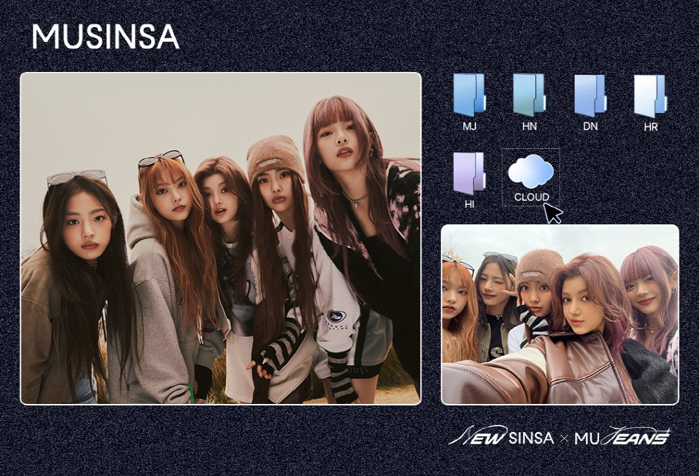 20일 무신사 글로벌 스토어에서 공개된 뉴신사 X 무진스 캠페인 화보는 1020 세대에게 친근한 클라우드를 모티브로 활용했다. 뉴진스의 사진첩에 들어있는 다양한 패션 스타일을 클라우드로 공유하는 컨셉으로 무신사를 통해 전 세계 어디에서나 가장 트렌디한 K-패션을 즐길 수 있다는 메시지를 담았다. 스타일리시한 패션 스타일에 뉴진스의 하이틴 감성을 더한 감각적인 비주얼이 눈에 띈다.