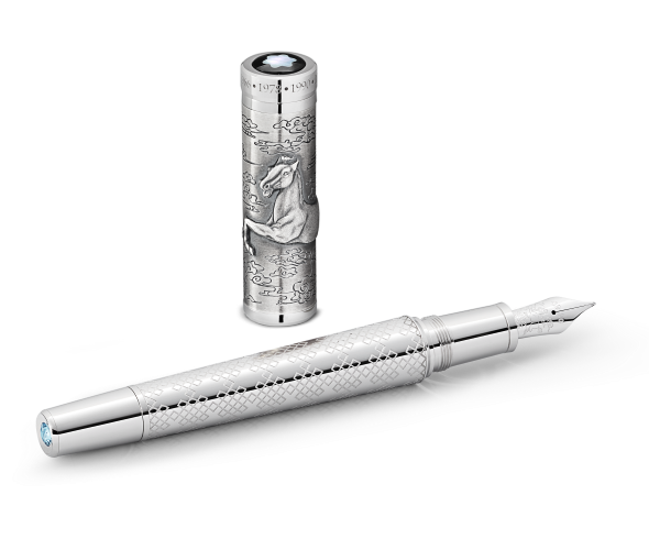 솔리드 Au 750 골드 닙에는 더 높은 차원으로의 여정을 상징하는 천마 모티프가 장식돼 있으며 캡탑에는 마더 오브 펄 소재의 몽블랑 엠블럼이 세팅되어 있다.