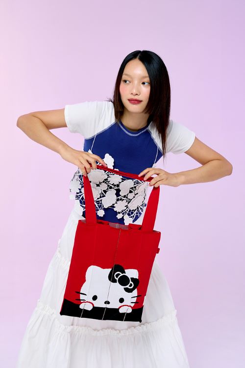 리미티드 에디션으로 출시된 헬로키티 50주년 컬렉션은 럭키 플리츠 니트 숄더백, 백팩, 보틀 파우치로 구성되어 있으며, 헬로키티 50주년을 기념하는 스페셜 리본 디자인이 특징이다. 50주년 헬로키티 리미티드 에디션 백팩은 무신사에서 단독으로 출시한다.