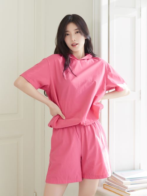 대표 아이템인 여성 홀리데이 우븐 반팔 후디는 시원한 터치감과 신축성이 뛰어난 나일론 스판 우븐 소재에 홀 구조를 적용했다. 밑단 부분에 조임끈이 적용돼 있어 여름 시즌 다양한 연출이 가능하다.