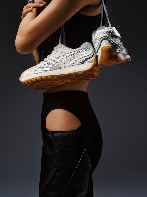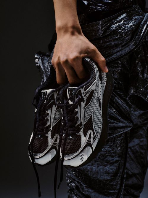 전반적인 디자인은 투박하면서도 개성 있는 갑피에 입체적인 곡선 실루엣, 두툼한 아웃솔이 조화를 이룬다. 애나멜, 메탈릭 등 광택 있는 소재를 적절히 사용해 레트로 감성을 살렸고 브랜드 심볼인 날개 모양의 ‘프리즈’를 활용해 속도감이 느껴지는 기교가 특징이다.
