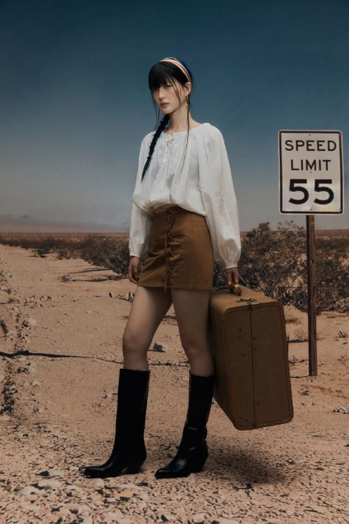 프릴 탑과 프릴 원피스, 레이스업 디테일의 블라우스와 스커트 등 총 10개 스타일로 구성됐으며 그 중 웨스턴 테마에서 빠질 수 없는 데님이 주력 아이템이다. 특히 데님 베스트와 맥시 롱 스커트의 조합을 추천한다.