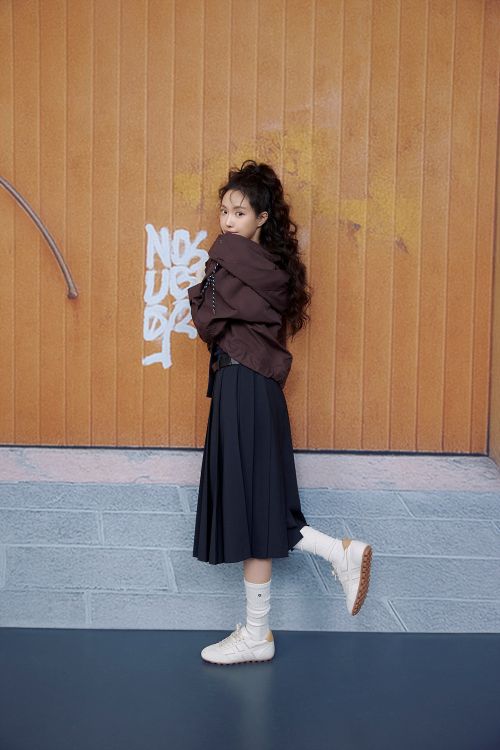 또한 그녀는 바람막이에 스커트를 매치한 패션으로 환절기 시즌 참고하면 좋은 스타일링까지 보여주었다.