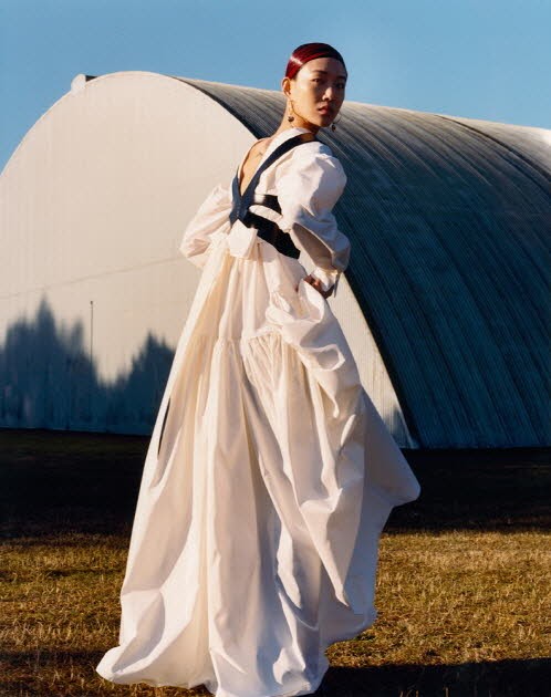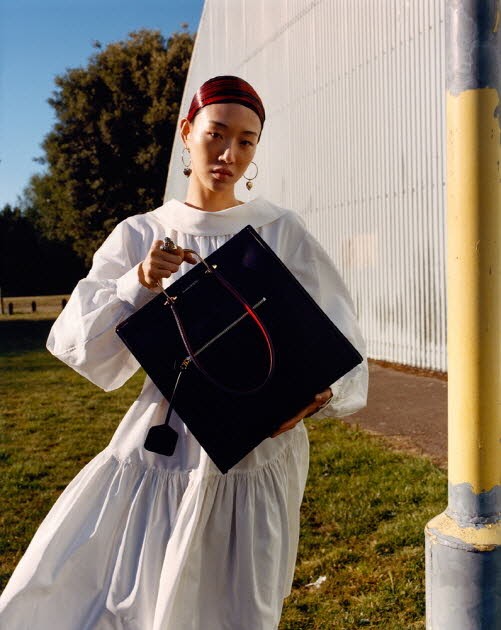 모델 최소라는 웨일스 지방의 전통 담요와 숄에서 영감 받아 제작된 테일러드 수트를 입어 강렬한 컷을 선보이는가 하면 퓨어한 포플린 소재의 화이트 드레스에 오버 사이즈의 톨 스토리 백을 매치해 우아한 컷을 완성했다.