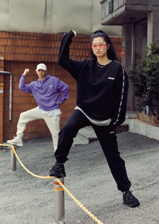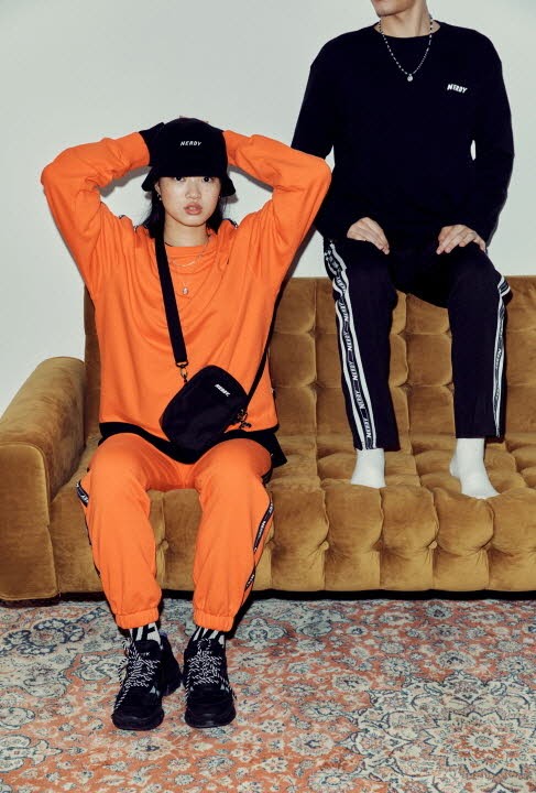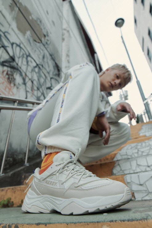 ‘널디’의 독보적인 컬러감과 기본에 충실한 베이직한 디자인으로 업그레이드된 트랙 슈트와 독보적인 아웃핏 연출이 가능한 널디핏 맨투맨과 후디가 메인이다. 특히 이번 컬렉션에서는 오는 9월 출시 예정인 트랙 슈즈 젤리그와 어글리 슈즈 젤리그 볼드도 함께 노출되어 있다.