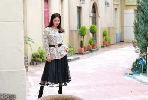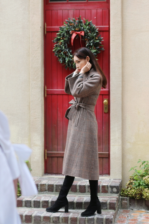 또한 고급스러움이 느껴지는 딥한 블루그린 컬러의 트렌치코트 차림으로 곧 다가올 가을을 알렸고 트위드 자켓에 핑크 풀오버 니트, 레이스가 돋보이는 플리츠 샤스커트로 우아하면서 페미닌한 스타일을, 또 다른 컷에서는 허리끈 장식이 있는 클래식한 체크 패턴의 롱코트와 롱부츠 차림에 크리스마스가 느껴지는 소품 연출까지 더해져 따스한 연말 분위기를 기대하게 했다.