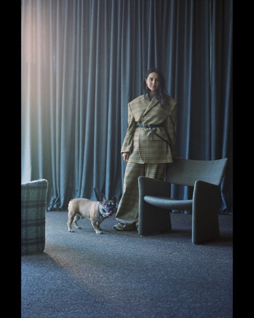 글로벌 홀세일 디렉터인 폰투스 비예르크만과 그의 요크셔테리어 켄조, 글로벌 커뮤니케이션 디렉터 에두아르 슈나이더와 그의 닥스훈트 품바, 테크니컬 디자이너 이오아나 치오칸과 그녀의 프렌치 불도그 멜빈이 함께 70년대 브루탈리즘 스타일의 건물과 인테리어를 배경으로 사진을 찍었다.
