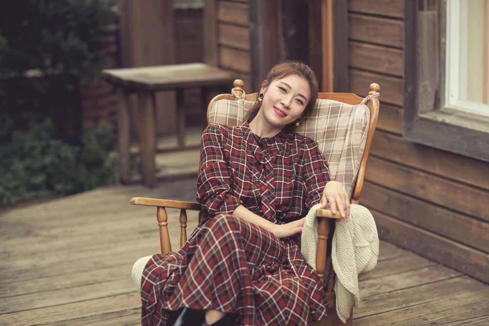 화보 속 하지원은 스커트투피스와 와이드 팬츠 투피스를 통해 여성스런 가을 감성의 느낌으로 편안하지만 가볍지 않은 분위기의 룩으로 연출했다.