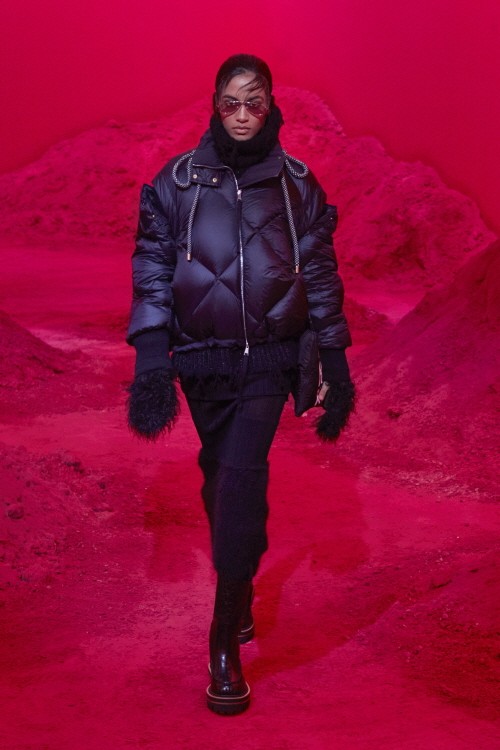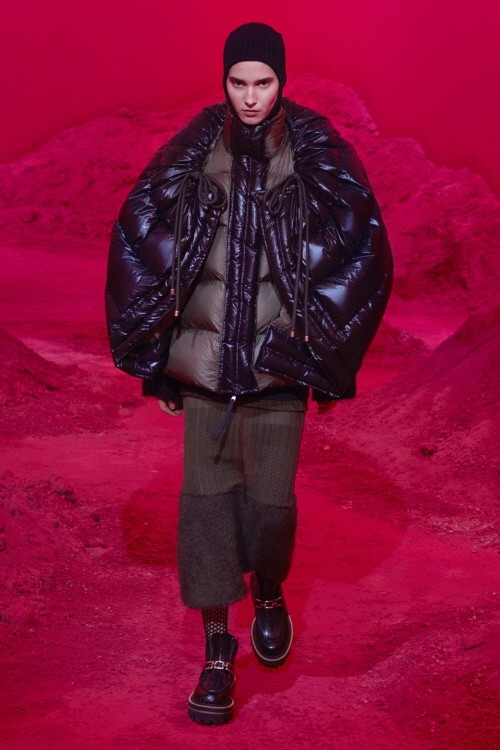 컬렉션에서 중요한 역할을 하는 니트웨어는 부댕을 재밌게 해석해 낸 모헤어 패딩 점퍼나 길게 늘어진 셔닐실 소재 스웨터 룩에서 엿볼 수 있다.