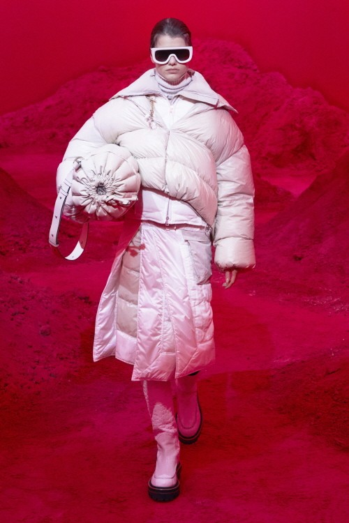 몸을 감싸는 코트들은 벌룬 형태를 극도로 끌어올리며 기능성을 잃지 않으면서도 부드럽고 길게 늘어트린 형태를 선보인다.