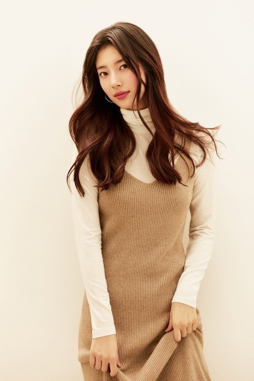 화보 속 수지는 이번 시즌 트렌드로 떠오르고 있는 긴 기장의 슬리브리스 스타일 니트 원피스를 터틀넥 티셔츠와 함께 매치해 편안하면서도 고혹적인 매력으로 눈길을 끌고 있다.