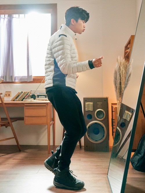 공개된 사진 속에서 임영웅은 햇볕 잘 드는 집 안을 배경으로 아이보리 색상의 압칸 구스 다운과 캐주얼한 데쿠베 라운드 스웨트셔츠로 남친룩을 방불케 하는 스타일링을 선보였다.