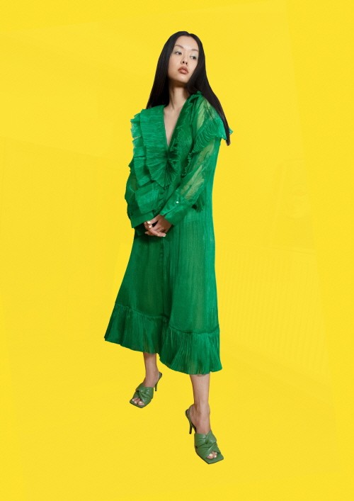 컬렉션 전반에 걸쳐 70년대의 록, 디스코, 그리고 펑크의 무드를 느낄 수 있으며 테일러링이 돋보이는 의상과 파티에 어울리는 의상이 조화를 이루고 있다. 데이비드 보위를 떠올리게 하는 젠더 플루이드 역시 컬렉션의 특징으로 브라이트 블루 컬러의 슈트, 어깨를 강조한 이탈리안 리사이클 울 소재의 그레이 코트, 리사이클 폴리에스테르 소재의 프릴 장식 블라우스 등이 주요 아이템으로 선보인다. 주요 컬러로는 스카이 블루, 말라카이트 그린, 그리고 이와는 대비되는 샴페인 핑크, 이탈리아의 성에서 영감받아 디자인된 마블 프린트 등이 사용되었다.