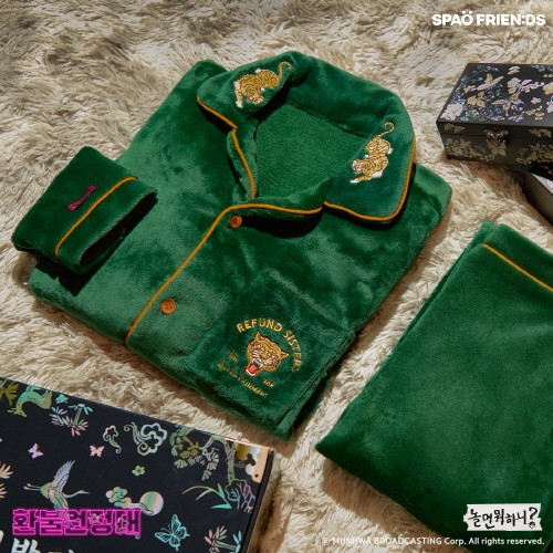 이번에 출시하는 제품은 총 2종의 수면 잠옷으로 환불원정대의 강한 감성이 돋보이는 디자인이다. 호랑이 자수가 돋보이는 ‘환불해 줘 어흥 수면잠옷’과 멤버들이 자주 입는 호피무늬 ‘REFUND SISTERS’ 레터가 포인트인 ‘샌캐 애니멀 잠옷’이다.