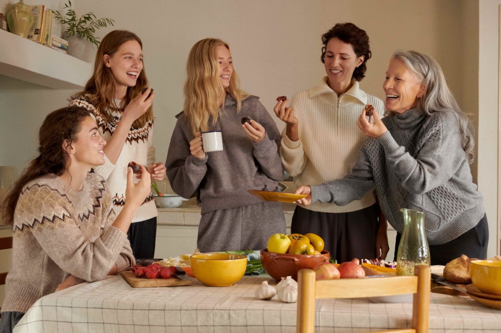 넉넉하고 편안한 사이즈의 꽈배기 스웨터와 새로운 패턴으로 이루어진 자카드 프린트의 스웨터, 트윈 세트로 입을 수 있는 조거 팬츠와 스웨트 셔츠까지 베이지와 브라운 그리고 그레이 컬러의 차분하면서 따뜻한 베이지 톤의 제품으로 구성된다.