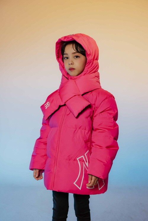 메가로고 패딩은 패밀리룩으로도 연출 가능하며 특히 레드와 바이올렛 컬러는 키즈에서만 단독으로 출시되어 주목을 끌고 있다. 또 숏패딩 패션의 정석으로 옷 잘 입는 키즈들에게 추천할 만하다.