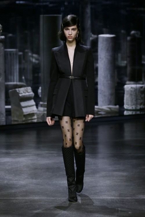칼 라거펠트의 레거시에서 차용된 칼리그래피 모노그램은 절제된 형태로 폭넓게 적용되었으며 ‘펜디’ 아카이브의 스케치는 건축적인 힐 디자인이 돋보이는 ‘펜디’ 퍼스트 슈즈로 새로운 ‘펜디’ 시대에 걸맞게 재탄생했다. 킴의 쿠튀르 컬렉션 속 다양한 모티브는 대리석 무늬의 실크 드레스, 활짝 핀 장미, 자카르 니트의 우아한 오간자 자수 장식 등을 통해 재현되었다.