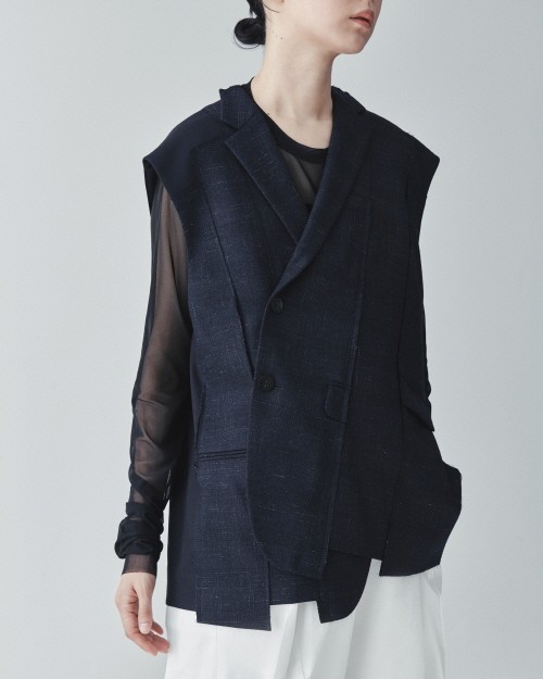 스웻셔츠나 점프수트점퍼 등 다양한 재고를 사용하는가 하면 생산 후에 남겨진 자투리 조각까지 활용하여 소위 제로 웨이스트를 실천하고자 했다기본 반팔 티셔츠에 정장 소매 안감이 패치하여 만드는가 하면 스웻셔츠를 해체하여 소매를 떼고 구조적인 실루엣의 새로운 케이프형 스웻셔츠를 보여주기도 한다.