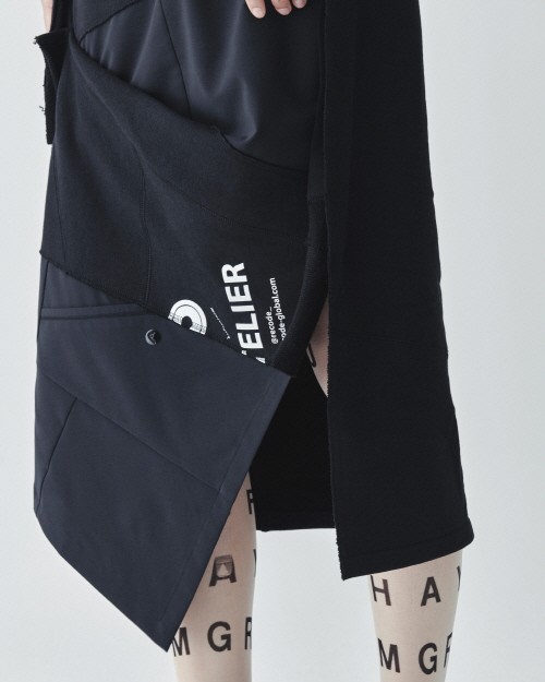 래코드는 이런 재료로 절개패치워크 플리츠와 같은 디테일을 더해 기존 브랜드에서는 볼 수 없는 새로운 실루엣을 만들어낸다색다른 실루엣이지만 색상 자체가 어두운 계열이기 때문에이미 가지고 있는 다양한 아이템과도 매치하기가 어렵지 않다.