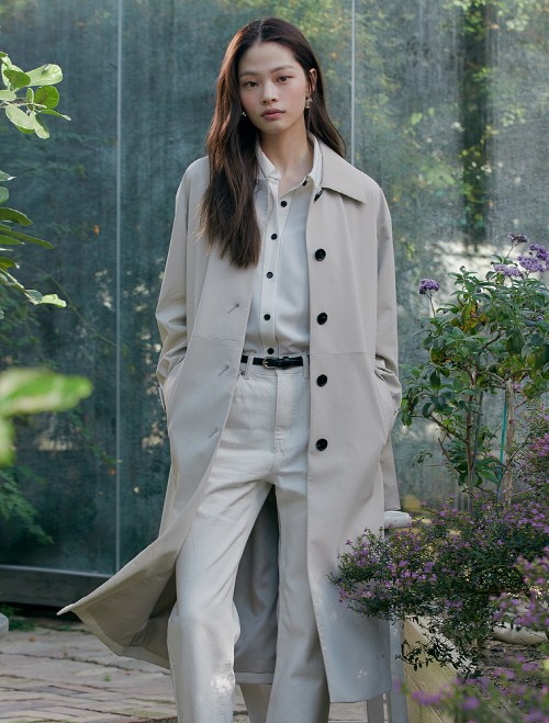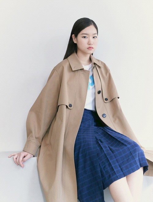 좀 더 발랄하고 캐주얼한 분위기를 내고 싶다면 ‘구호플러스’의 트렌치코트를 눈 여겨봐야 한다. 미니멀 영 컨템포러리 브랜드 ‘구호플러스’는 시그니처 코쿤 핏과 스탠드 칼라를 적용하고 짧은 기장으로 활동성을 높인 트렌치 코트를 선보였다. 아웃 포켓과 스트링 디테일을 더한 쇼트 트렌치 코트에 미니 데님 스커트를 매치해 트렌치 코트의 전형적인 스타일에서 벗어나 브랜드가 추구하는 젊은 감성을 입혔다. 또 ‘구호플러스’만의 구조적인 실루엣이 돋보이는 롱 맥 트렌치 코트는 이미 리오더에 들어갔을 정도로 고객 반응이 뜨겁다.