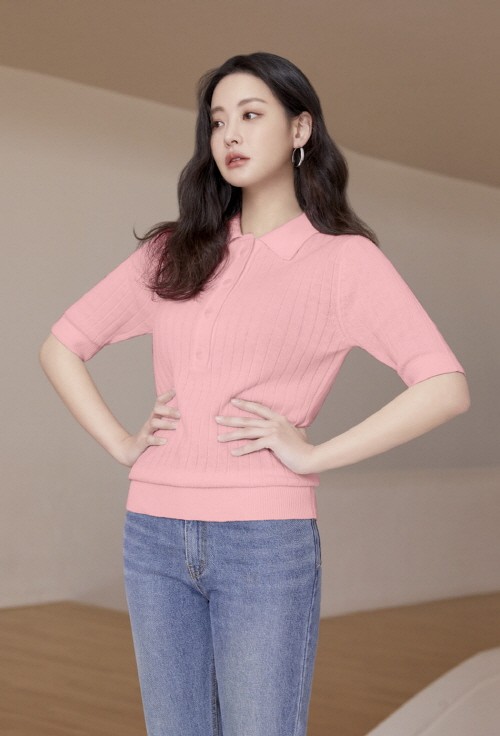 세로 8코 골조직과 레귤러 한 핏으로 디자인해 라인을 타지 않아 날씬해 보이고 단정한 연출을 할 수 있고 큼지막한 카라가 달려있어 여성스러운 연출이 가능하다. 또한 암홀에 헤라시를 주어 디테일한 디자인을 더했다. 색상은 봄여름에 화사한 진달래 컬러의 핑크와 산뜻한 민트 컬러로 입을 수 있게 구성했다.