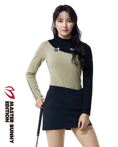 정지유 프로가 착용한 사선 블로킹 니트는 타임리스 컬러 베이지-블랙의 컬러톤믹스에 과감한 사선 블로킹으로 스타일리시한 감도를 높였다. 또한 소매에는 타이포그래픽 디테일을 추가해 스포티한 이미지를 강조했다. 여기에 사선으로 허리라인을 변형시킨 슬릿 로고 큐롯 스커트를 매치하면 슬림한 실루엣을 연출할 수 있다. 정지유 프로의 사선 블로킹 니트는 블랙, 베이지 2컬러가 출시되었다.