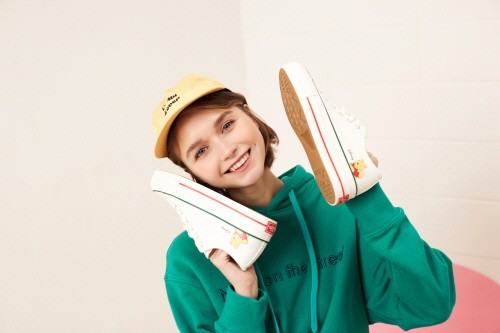 한정판 디즈니_캔버스 스니커즈는 지난해 ‘지니킴’이 스니커즈 라인으로 출시와 동시에 폭발적인 인기를 이끌며 ‘지니킴’의 저력을 실감케 했던 시리즈다. ‘미키마우스’와 ‘미니마우스’ 캐릭터에 이어 올 봄에는 따뜻한 핑크색의 ‘덤보’와 푸릇푸릇 상큼한 연두색의 ‘푸’ 캐릭터를 추가출시하여 지니킴과 디즈니 캐릭터 팬들의 마음을 설레게 하고 있다.