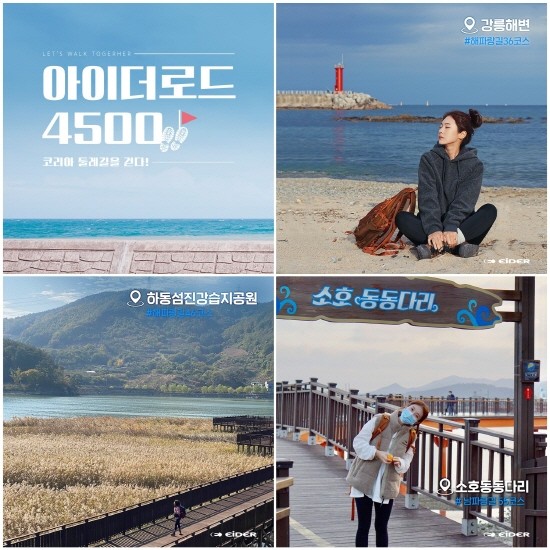 ‘아이더’는 이번 시즌 테마로 새로운 걷기 액티비티 투어링을 제시하며 아이더로드4500 캠페인으로 걷기 여행 판 확장에 나섰다. 국내 최장 길이인 4,500km의 코리아둘레길을 걷는 아이더로드4500 캠페인은 우리나라 둘레길의 우수성을 알리고 건강한 투어링 문화를 확산시킨다는 목표에서 시작했다. 지난 10월부터 전개하고 있는 참여형 캠페인으로 국내 최대 운동 어플리케이션 트랭글을 통해 아이더로드 코스 안내, 기록 인증 공유 등 다양한 서비스를 제공하고 있다. 트랭글 앱 내 아이더로드4500 클럽에서는 참가자들과 자유롭게 소통할 수 있으며 완주 구간에 따라 선물을 증정하는 등 모두가 즐길 수 있는 투어링을 위해 힘쓰고 있다.