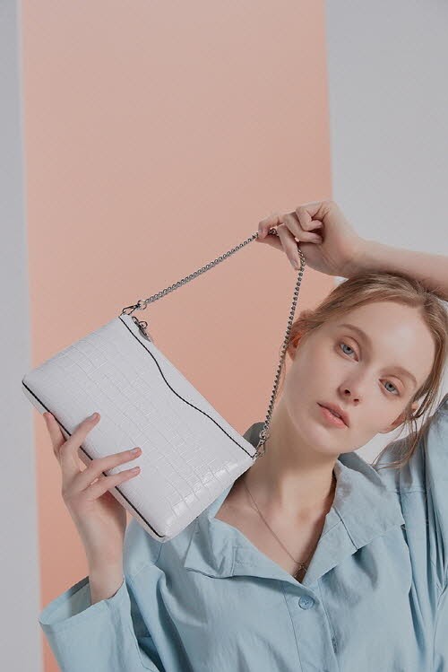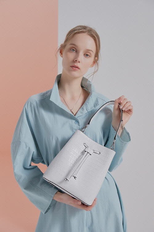 뉴욕 첼시 컬렉션은 버킷백과 클러치백 2종이 한 세트로 구성되어 가성비와 실용성을 중시하는 현대 소비 트렌드 맞춤형으로 탄생했다. 기본 블랙, 그레이, 탄 컬러부터 시즈널한 오렌지, 화이트까지 총 5가지 색상으로 완성되어 선택의 폭을 넓혔고 소가죽 소재에 크로커 엠보 패턴을 적용시켜 고급스러우면서도 내추럴한 멋을 표현했다. 복조리 형태의 버킷백은 안정감 있는 실루엣으로 수납 활용도를 높였으며 함께 구성된 클러치백은 체인 스트랩으로 포인트를 살렸다.