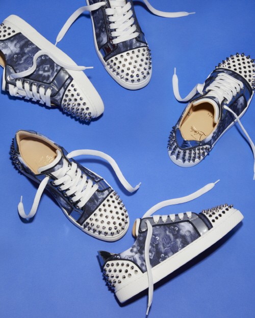 특히 앞코와 스니커즈의 뒷면에는 ‘크리스찬 루부탱’의 시그니처 디테일인 스파이크로 포인트를 주어 활동적이면서 발랄한 느낌을 주며 스파이크의 실버 컬러와 톤온톤의 그로그랭의 조화로 패셔너블함이 돋보인다.