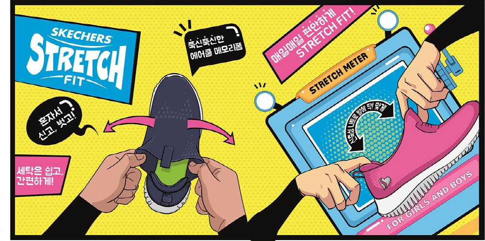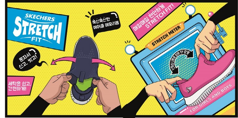 ‘스케쳐스 키즈’의 스트레치핏 운동화는 활동성이 많은 저학년 아이들의 편의성을 위해 신발 끈이 없는 슬립온 디자인을 선택했다. 갑피 전체가 신축성과 탄력성이 좋은 스트레치 니트 소재로 어떠한 움직임에도 양말을 신은 듯 편안한 착화감을 제공한다.