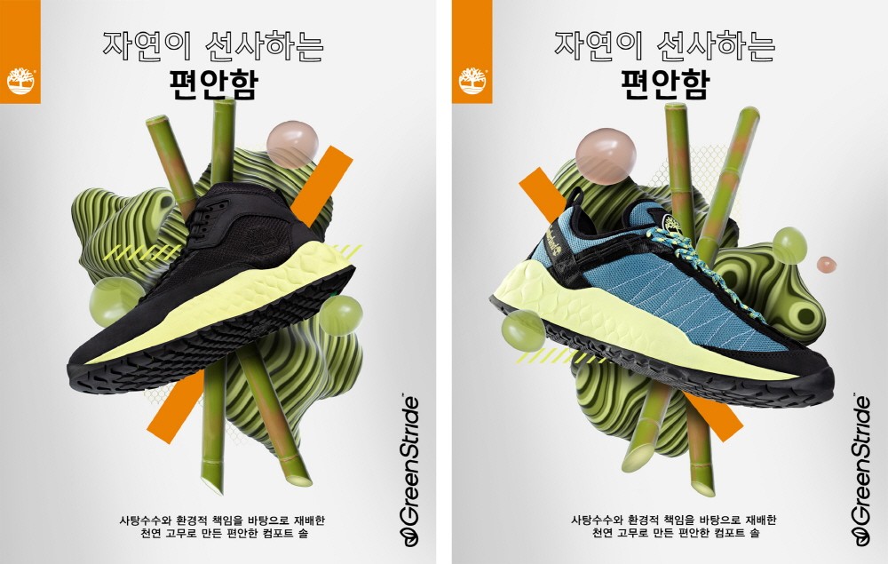 ‘팀버랜드’가 사탕수수와 환경적 책임을 바탕으로 재배한 천연 고무 등 재생 가능한 소재로 만든 그린스트라이드 컴포트 솔을 적용해 편안한 발걸음을 선사하는 하이-비스 컬렉션을 선보인다.