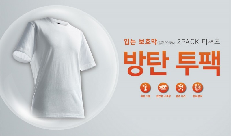 한세엠케이(대표 김동녕 김지원)가 포스트 코로나 시대에 맞춰 항바이러스 기능을 강화한 티셔츠 2종, 방탄 투팩을 출시했다.