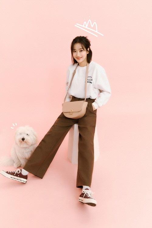 핑크 배경 속 이나은은 캐주얼한 스웻셔츠에 핑크베이지 컬러의 백을 착용하며 발랄한 스타일링을 보여주는가 하면 원피스와 재킷 코디에는 아이보리 컬러의 새들백을 착용해 시크한 무드를 완성했다.
